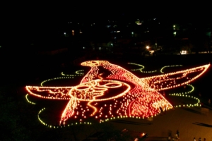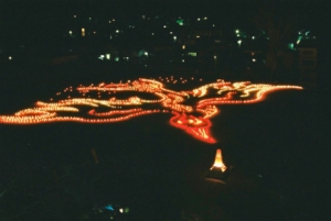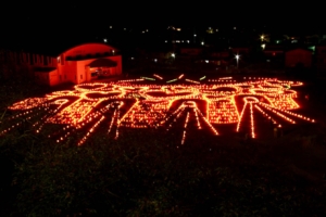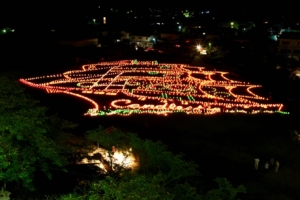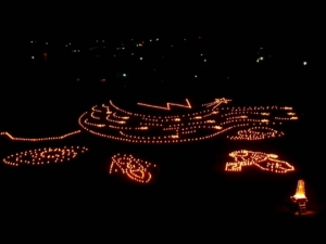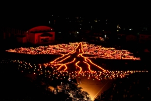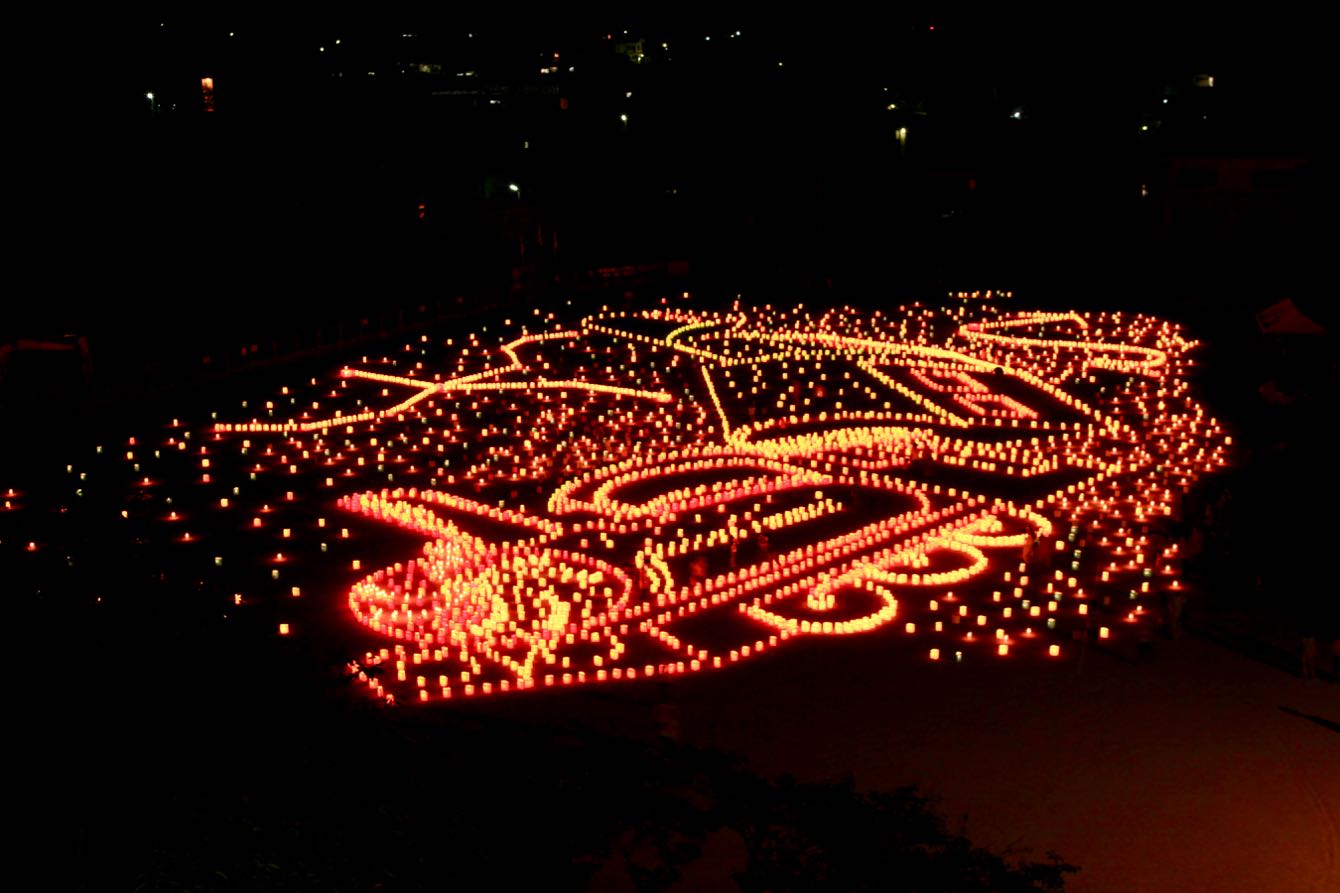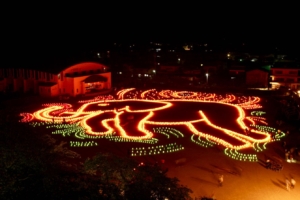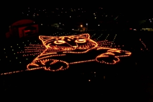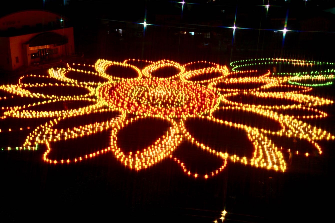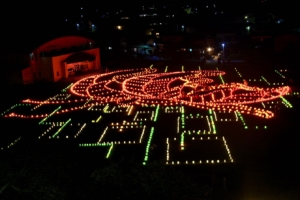 「キャンドルエナジー」をテーマに地上絵「太陽の塔」を表現